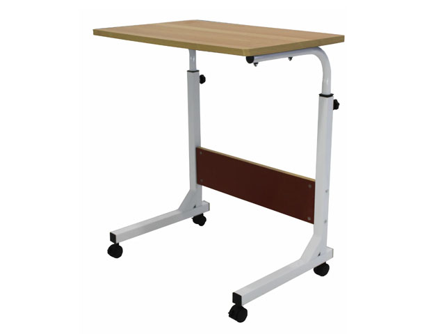 Escritorio Práctico y ligero, compuesto por una estructura tubular móvil color blanco y cubierta de madera nogal encino